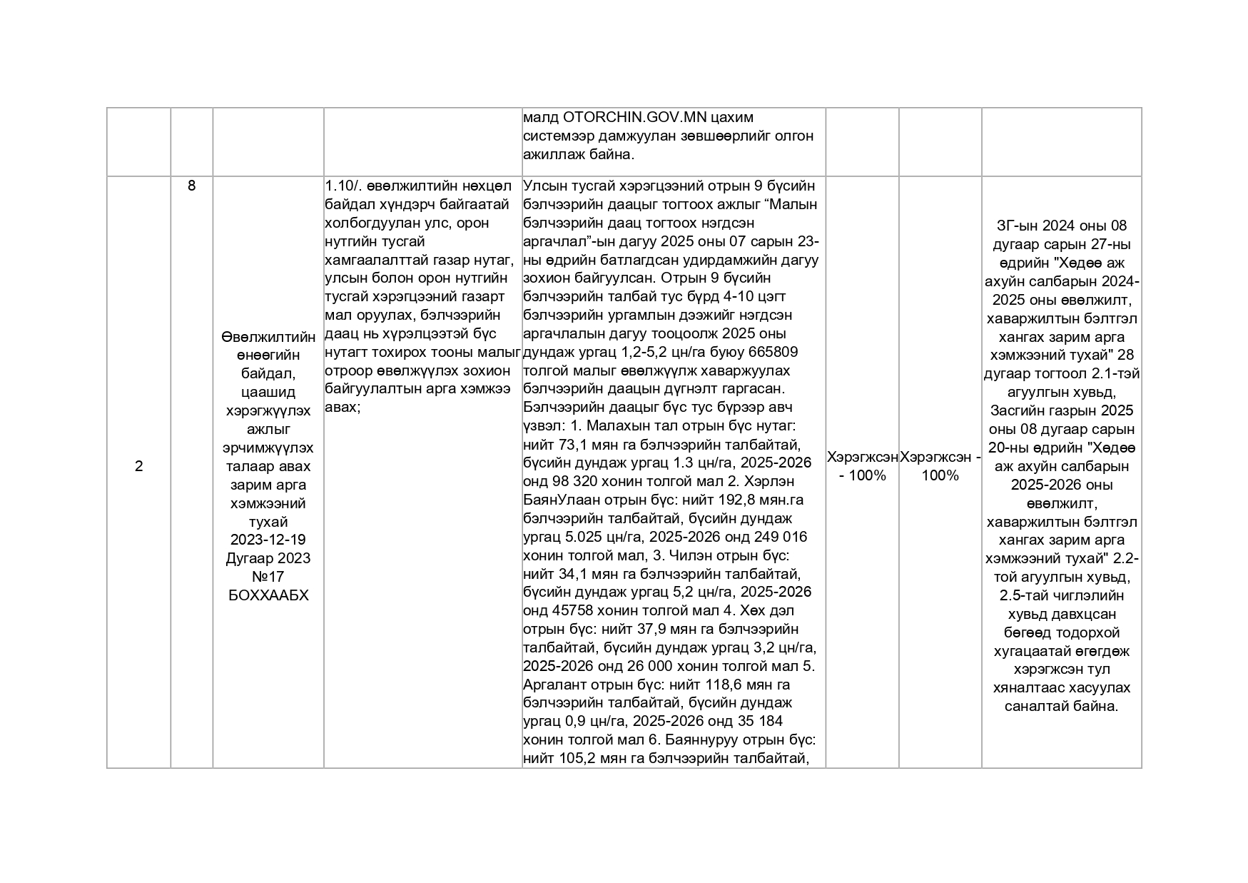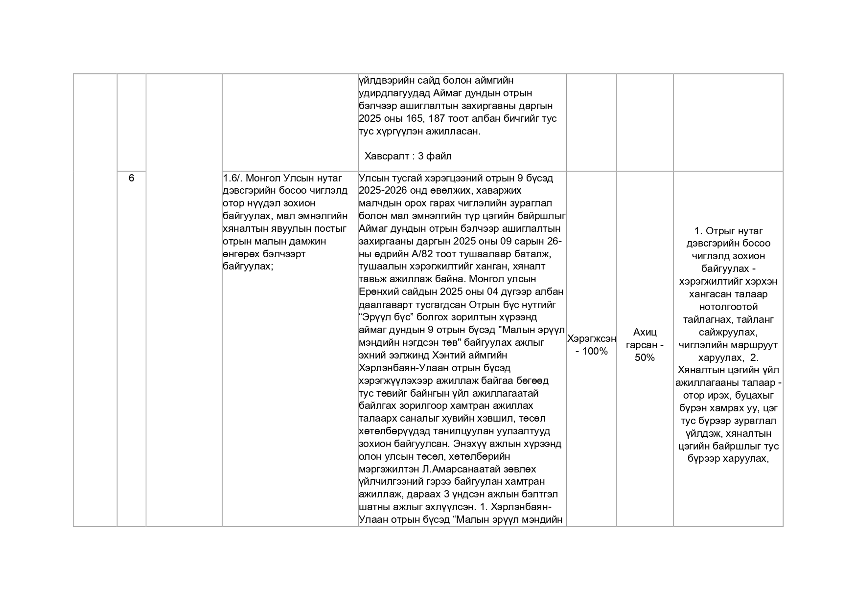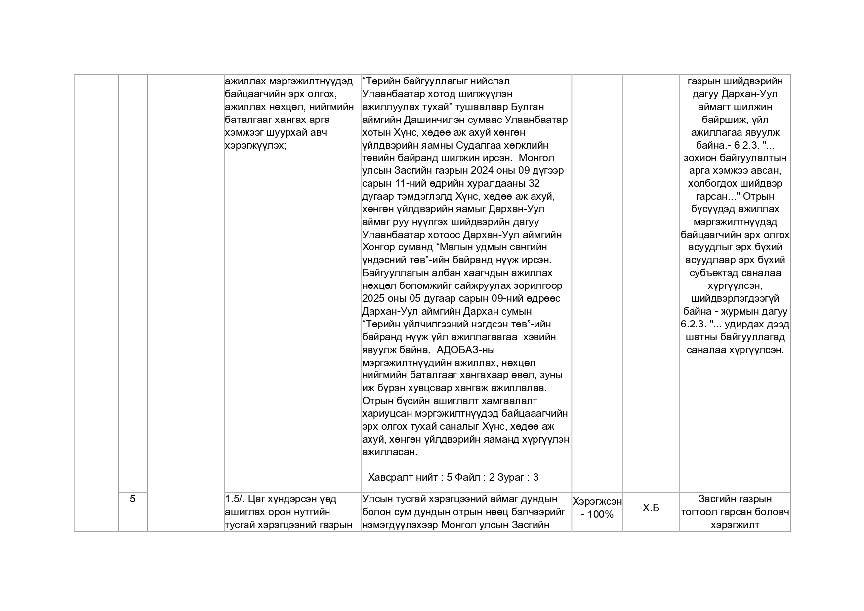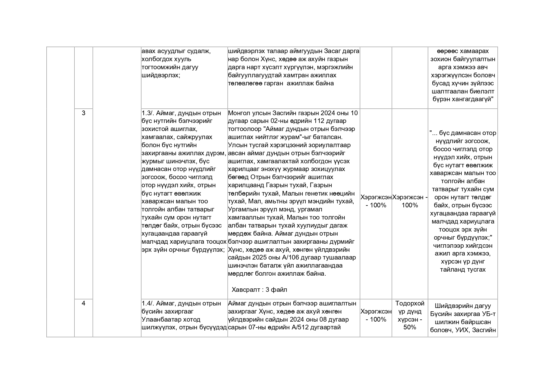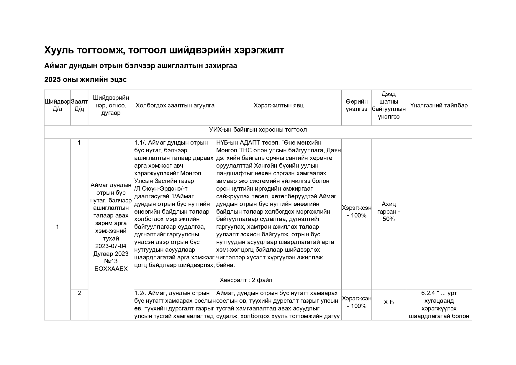 Хууль тогтоомж, тогтоол шийдвэрийн хэрэгжилт
