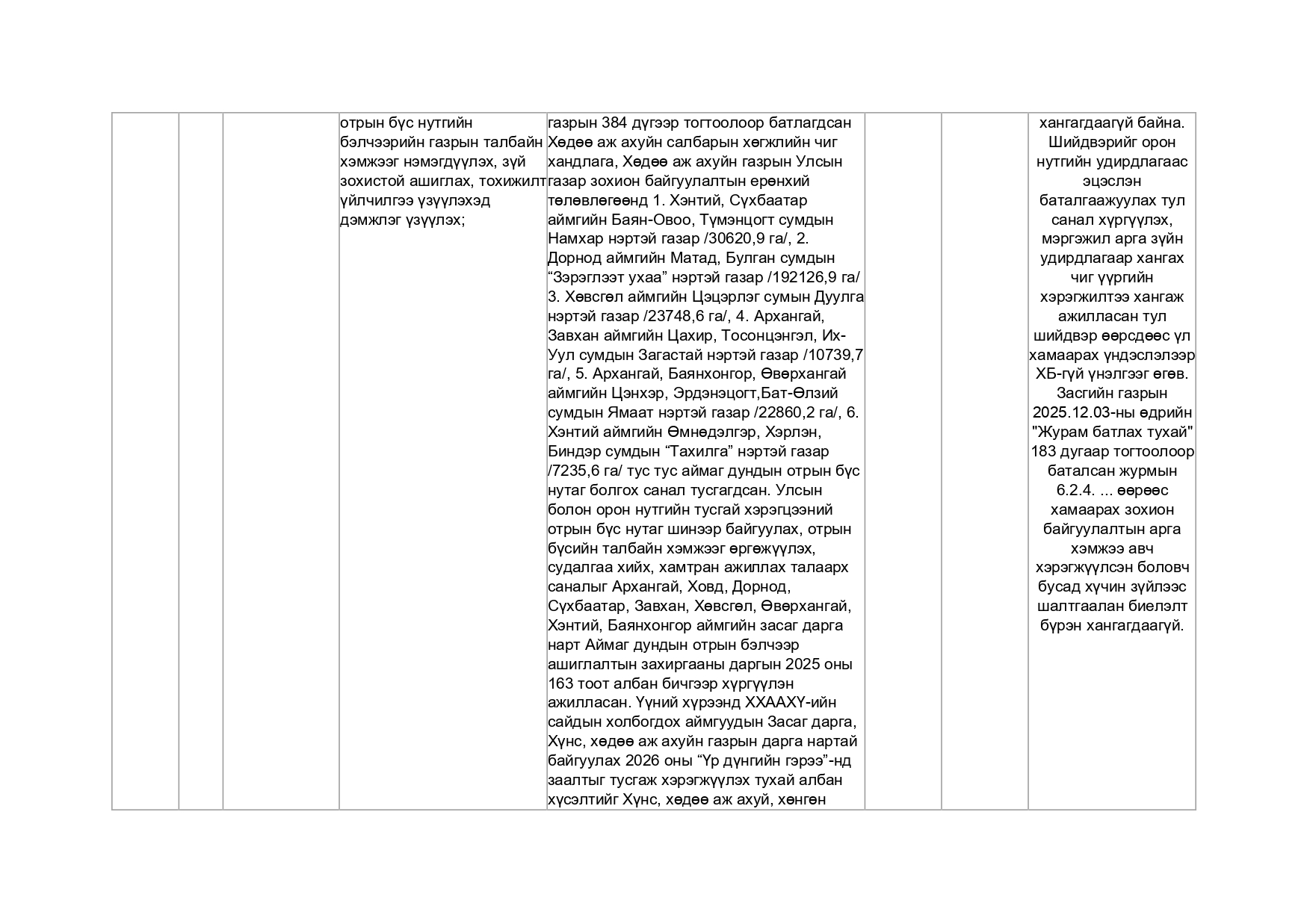 Зөвшөөрөлгүй отрын бүсд байгаа малчин өрх, малын судалгаа