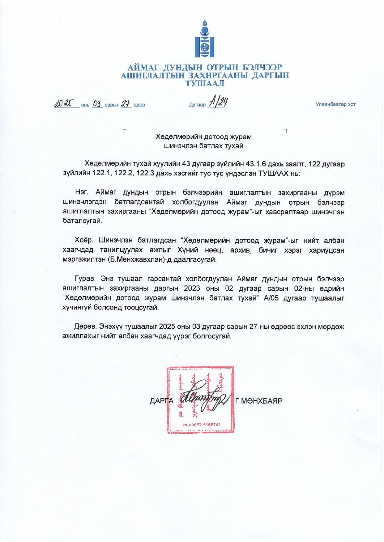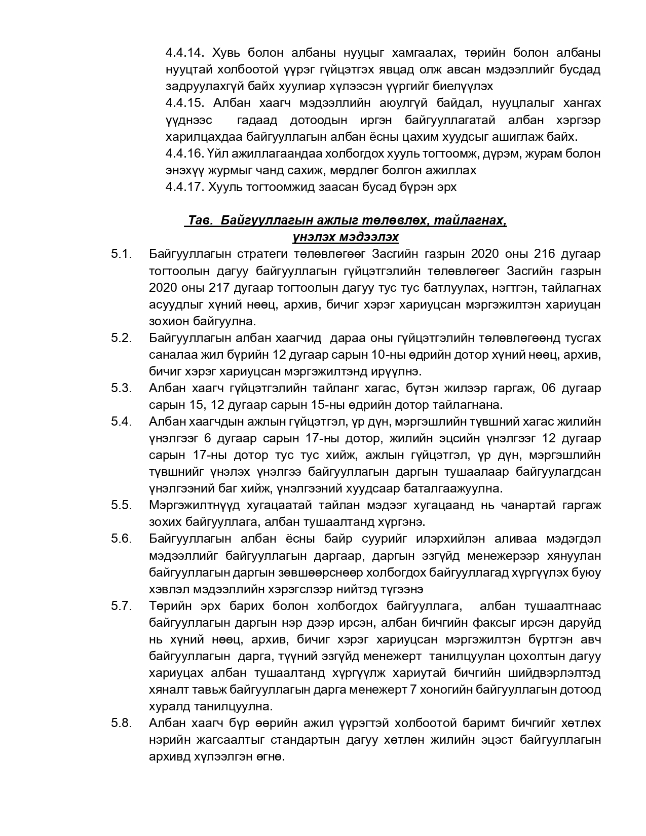 Хууль тогтоомж, тогтоол шийдвэрийн хэрэгжилт