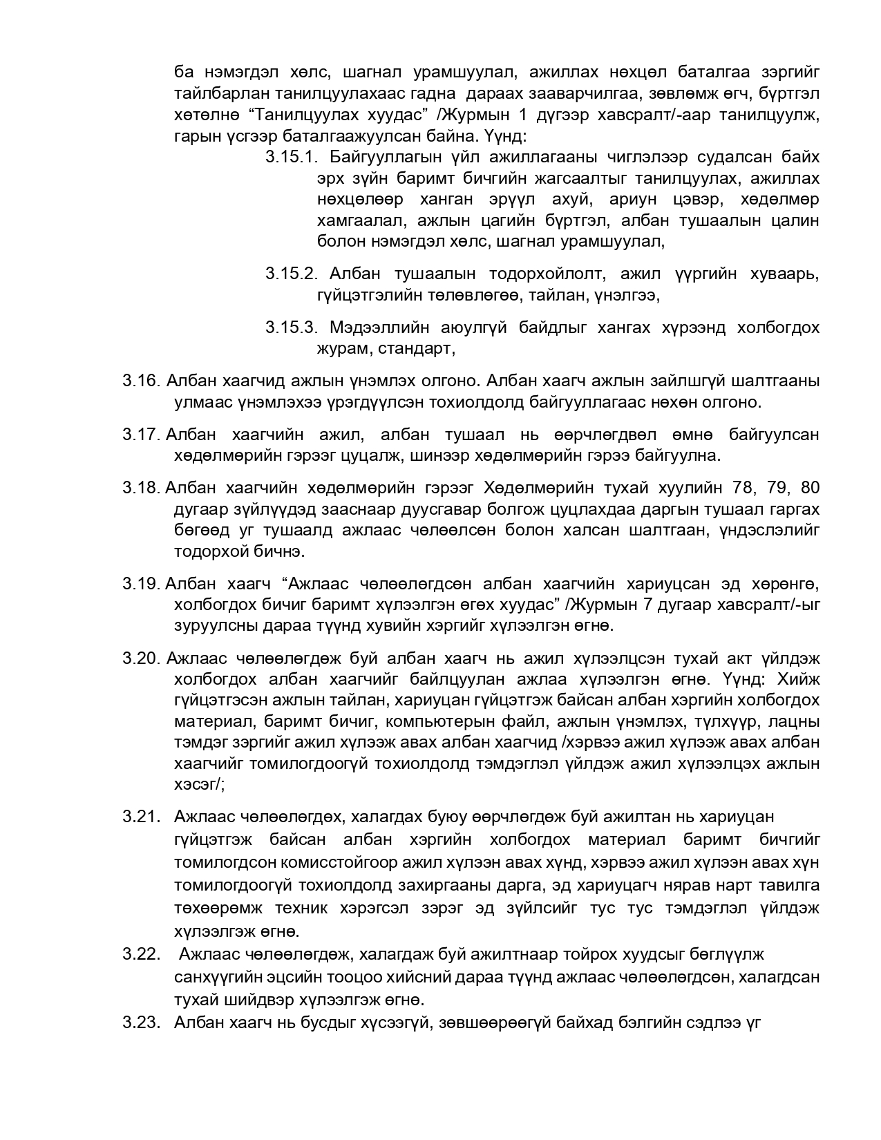 ажлын гүйцэтгэл, сонгон шалгаруулах албан хаагчийн ёс зүйн дүрэм